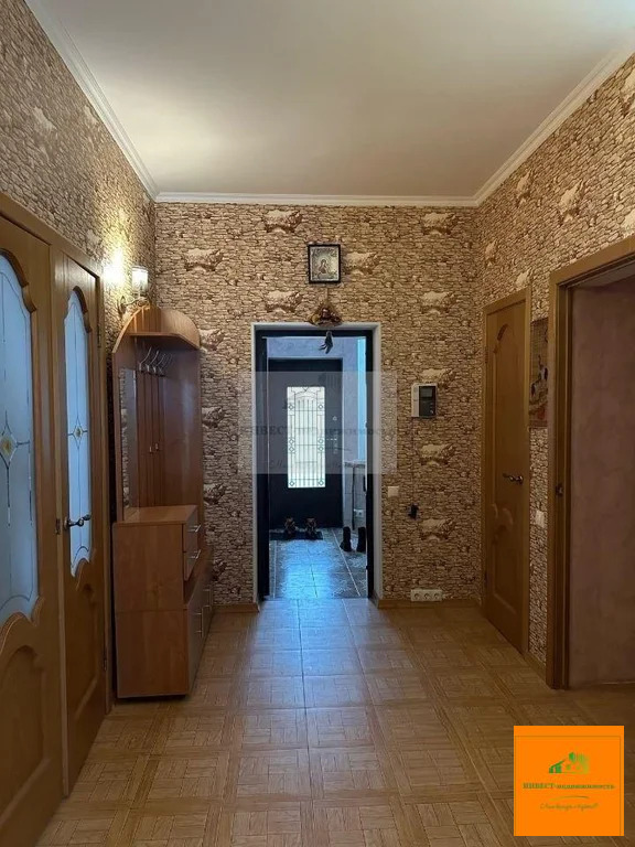 Внутренняя отделка стены обклеены обоями(кирпичик), что создает ощущение рустикального или винтажного стиля. Пол покрыт керамической плиткой в прихожей, ванной, и кухне нейтрального бежево-коричневого оттенка. В комнатах ламинат.