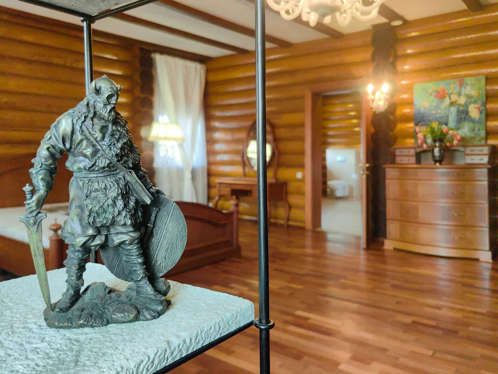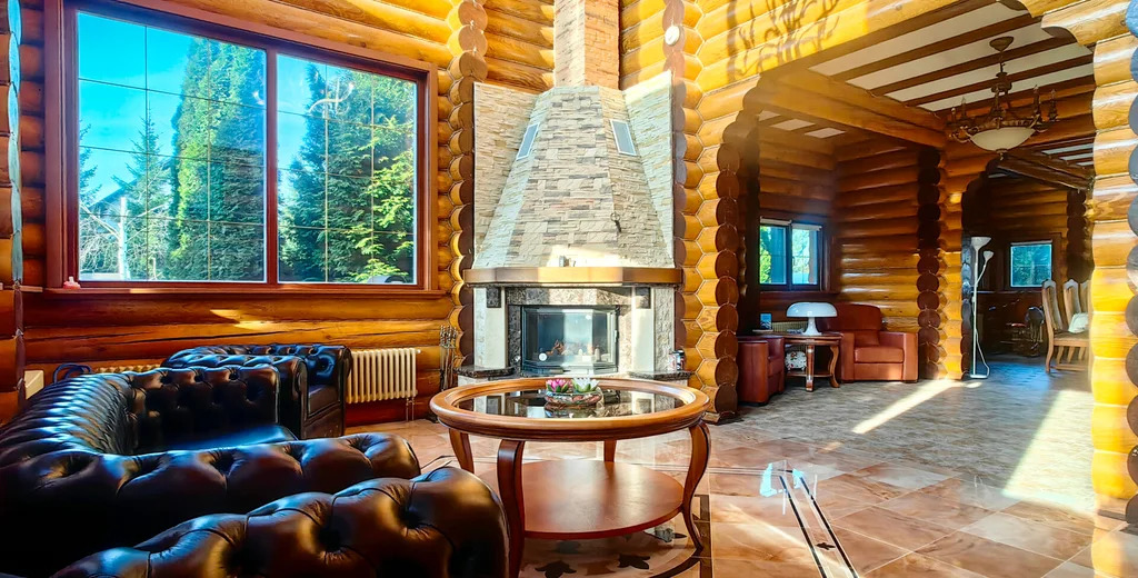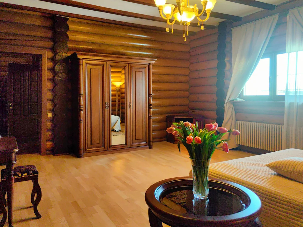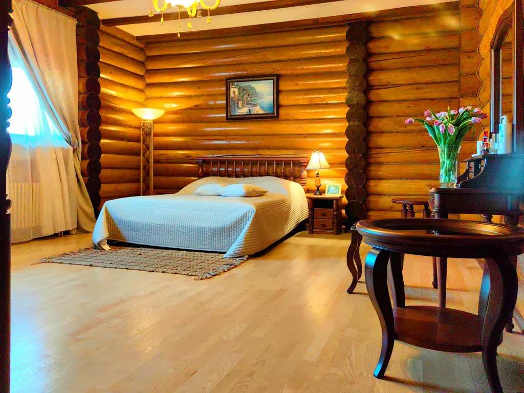 Проект архитектора С.А. Денисова. Уникальный загородный ансамбль из трех отдельно стоящих строений, выполненных из отборного оцилиндрованного бревна лиственницы.