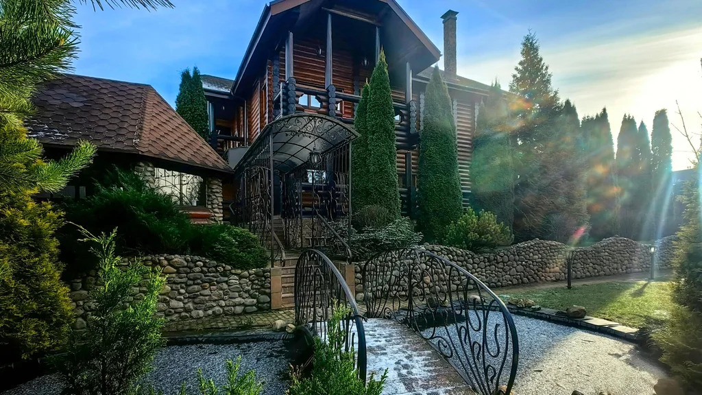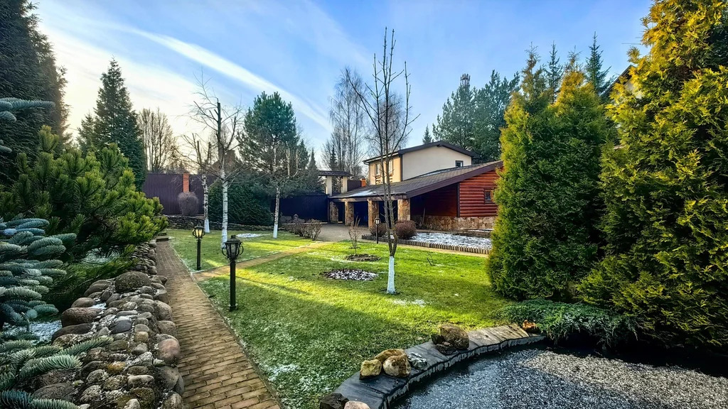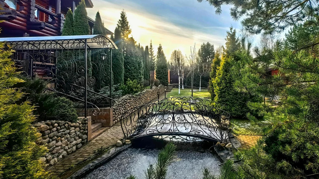 Живописный ландшафтный дизайн с вечерней подсветкой. Мини-пруд с естественной системой очистки, мостиком и водопадом. Хвойные и плодовые деревья. Закрытая беседка-барбекю с водопроводом, мангалом и печью для казана.